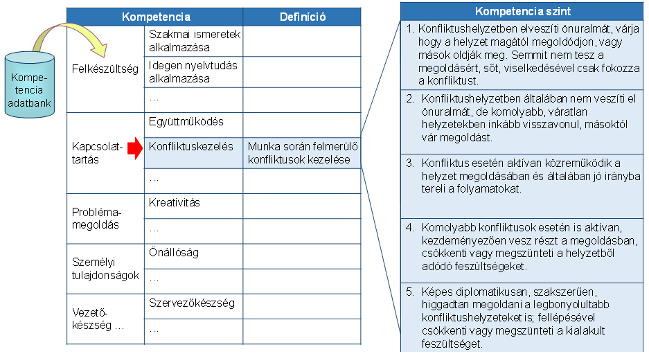 Kompetencia alatt a hatékony munkavégzéshez szükséges tudást, tapasztalatot, készségeket és képességeket értjük. A kompetenciának számos összetevője van, a tudáson és a jártasságokon kívül ide tartoznak a személyes értékek, a különböző személyiségvonások, viselkedési formák és motivációk.