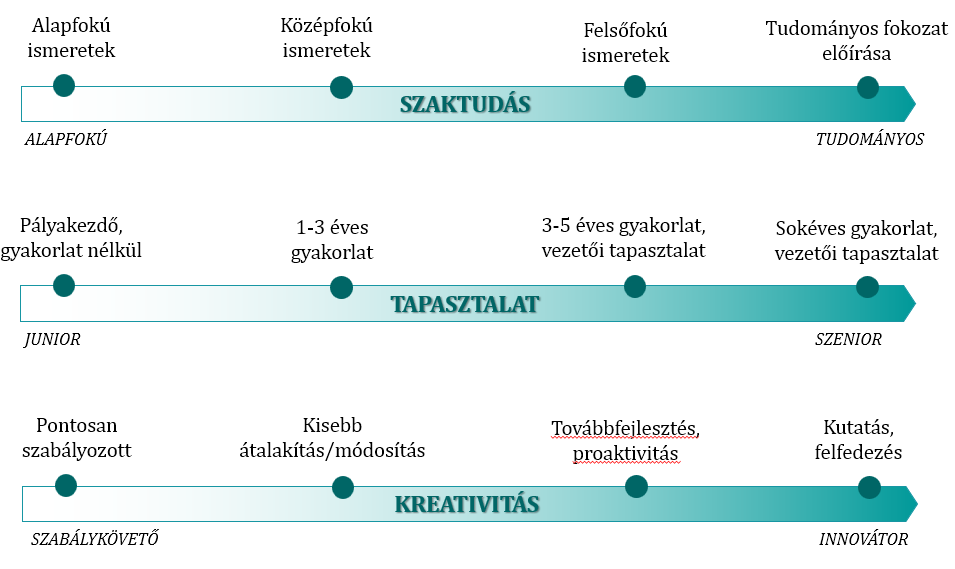- A besorolási szintek kifejezik az adott munkakör szervezeten belüli relatív fontosságát