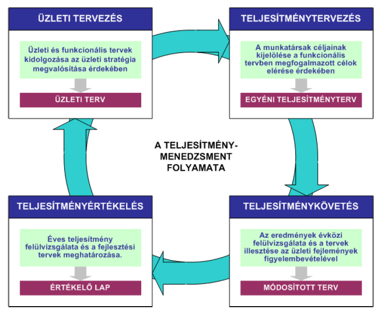 - A teljesítmény követése, mérése és az elért eredmények értékelése