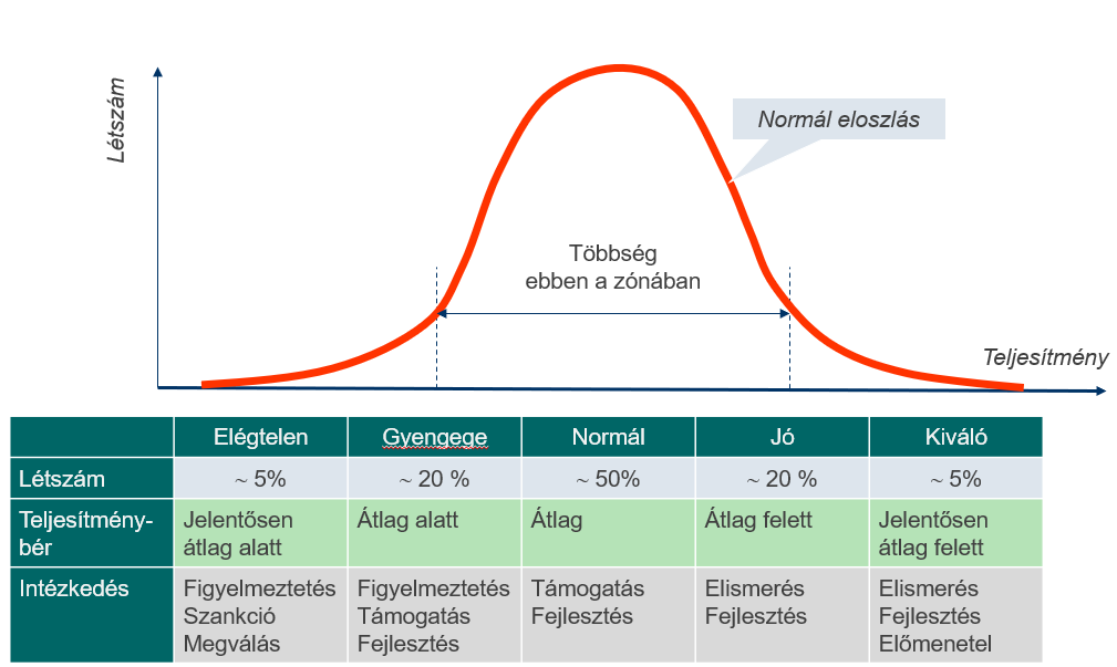 A felügyelt szervezeten belül a többség az elvárásoknak megfelelően teljesít, de átlagon felül és átlag alatt teljesítők egyaránt léteznek. Nem szabad mindenkit kiválónak vagy jó szintűnek értékelni, a vezetőnek fel kell vállalni a differenciálást.